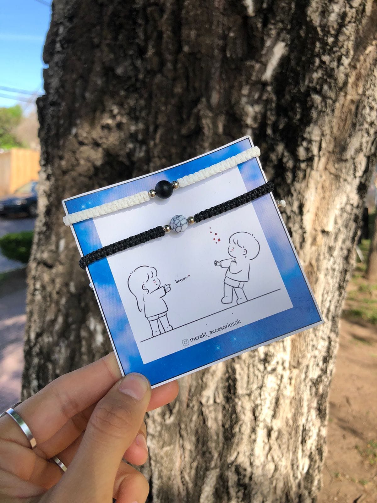 Las pulseras son de hilo encerado regulables, con el pasante de piedra natural ( Howlita y Onix)